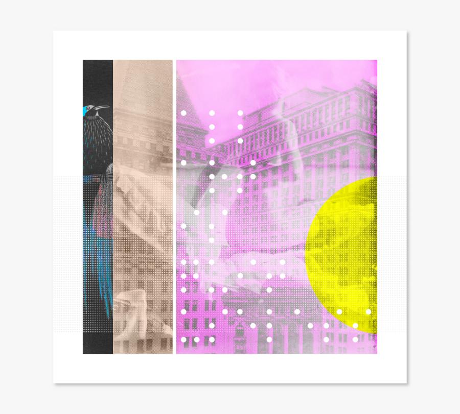 Omschrijving: Deze collage “Naakt op Bed” is van een combinatie van oude foto’s en beelden voornamelijk uit het digitaal archief van het Rijksmuseum in Amsterdam. De foto van de vrouw op bed is een daglichtgelatinezilverdruk gemaakt door George Hendrik Breitner, ca. 1889 gecombineerd met een foto uit de jaren 20 van een onbekend gebouw in New York en een afdruk van een houtsnede van Samuel Jessurun de Mesquita uit 1914. Samen maken ze een prachtige foto collage. Over de collage is in zeefdruk techniek een braille tekst gedrukt die het werk weer perspectief zet. De uitspraak van Oscar Wild “All art is quite useless”.